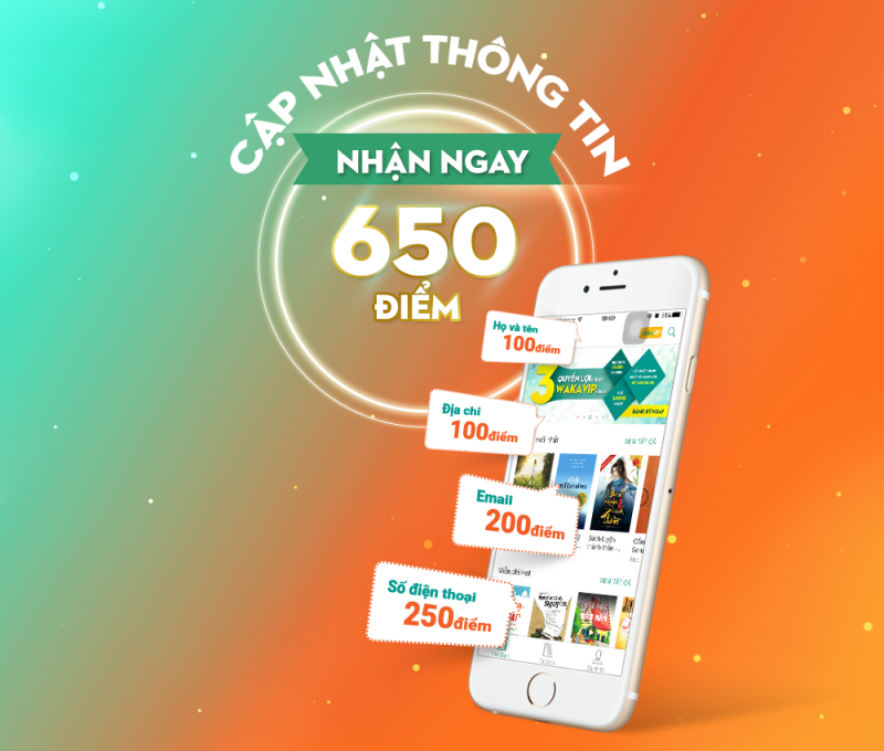 Theo đó, khi cập nhật thông tin cá nhân bao gồm Họ tên, Địa chỉ, Email và Số điện thoại của mình trên hệ thống của Waka, độc giả sẽ được tặng đến 650 điểm cộng vào điểm Thử thách đọc sách. Với số điểm này, các thành viên của Waka có thể tham gia đổi lấy những phần quà hấp dẫn trong các đợt “Đổi điểm – Nhận quà” hàng tháng.