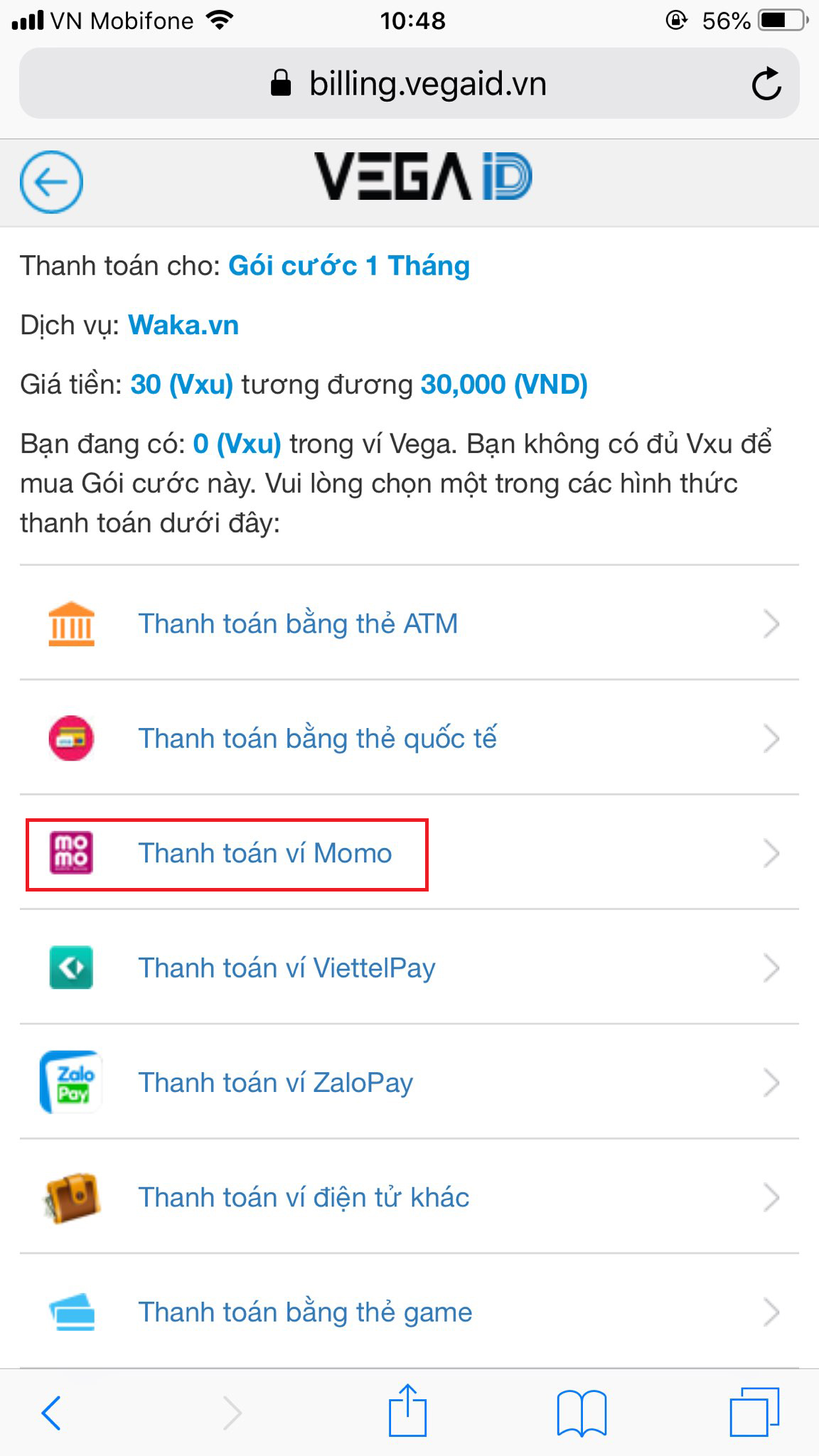 Nhằm phục vụ việc đọc sách thuận tiện trên các thiết bị cầm tay, Waka xin hướng dẫn cách đăng ký gói hội viên trên wapsite, thanh toán qua ví điện tử Momo.