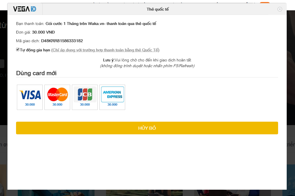 Waka xin hướng dẫn các bạn cách đăng ký gói hội viên trên website, thanh toán qua thẻ quốc tế.