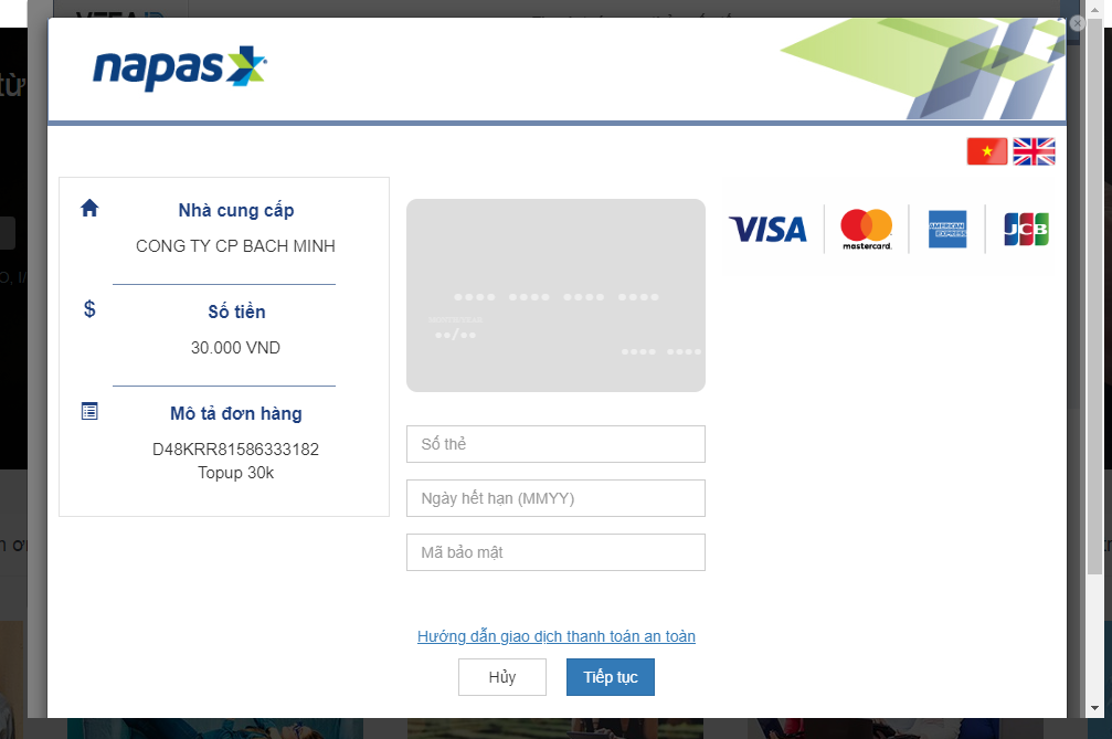 - B4: Lựa chọn kênh thanh toán (Thanh toán qua thẻ quốc tế)