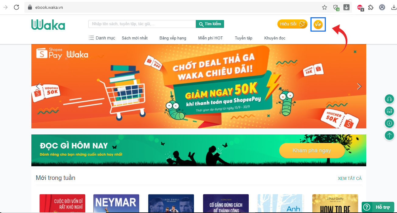 - Bước 1: Truy cập website https://waka.vn/ trên máy tính. Chọn box VIP (bên phải màn hình)