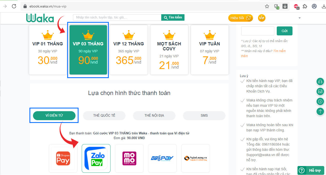 Sau khi thanh toán thành công, bạn có thể check lại tài khoản đã đăng ký. Để nhận hỗ trợ từ team CSKH Waka, độc giả vui lòng inbox fanpage https://www.facebook.com/thuvienebookwaka
