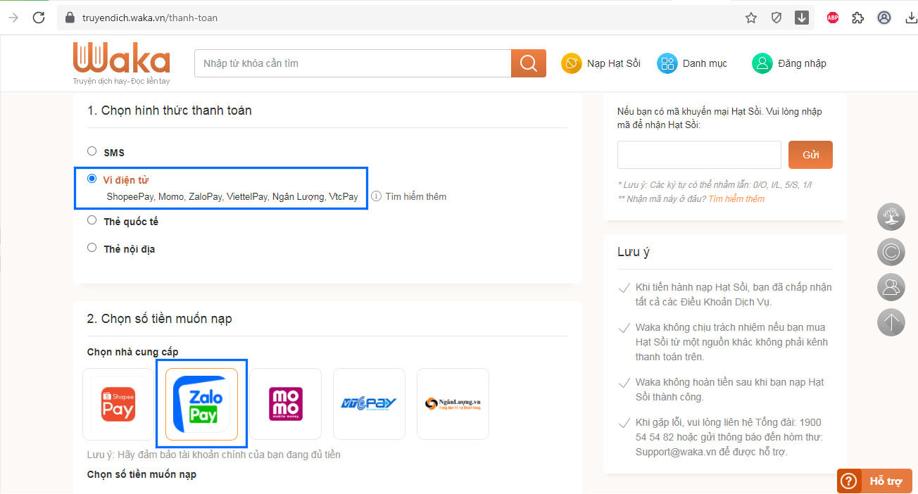 Từ tháng 9/2021 Waka chính thức triển khai dịch vụ thanh toán qua ví điện tử ZaloPay. Dưới đây là bài hướng dẫn mua gói hội viên và nạp SỒI bằng ví điện tử ZaloPay trên máy tính. Nếu bạn chưa biết các thanh toán thì tham khảo ngay bài viết dưới đây nha!