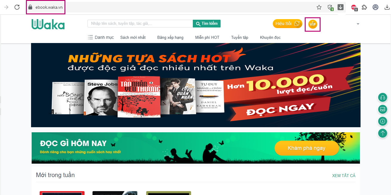- Bước 1: Truy cập https://waka.vn/ trên máy tính hoặc điện thoại thông minh, đăng nhập/đăng ký tài khoản Waka. Chọn box VIP (bên phải màn hình)