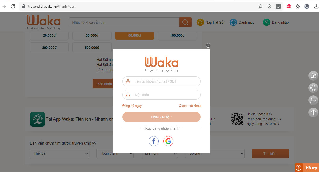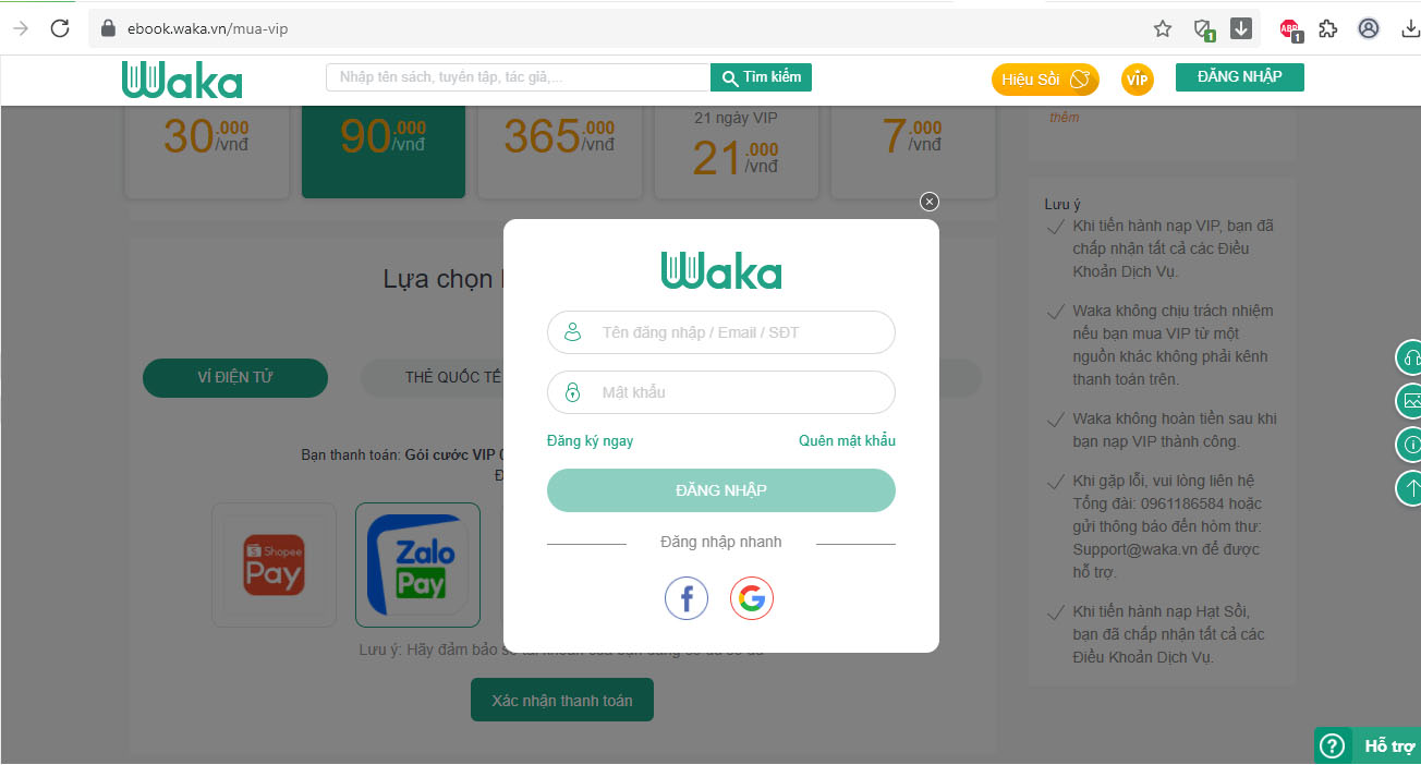 Sau khi thanh toán thành công, bạn có thể check lại tài khoản đã đăng ký. Để nhận hỗ trợ từ team CSKH Waka, độc giả vui lòng inbox fanpage https://www.facebook.com/thuvienebookwaka