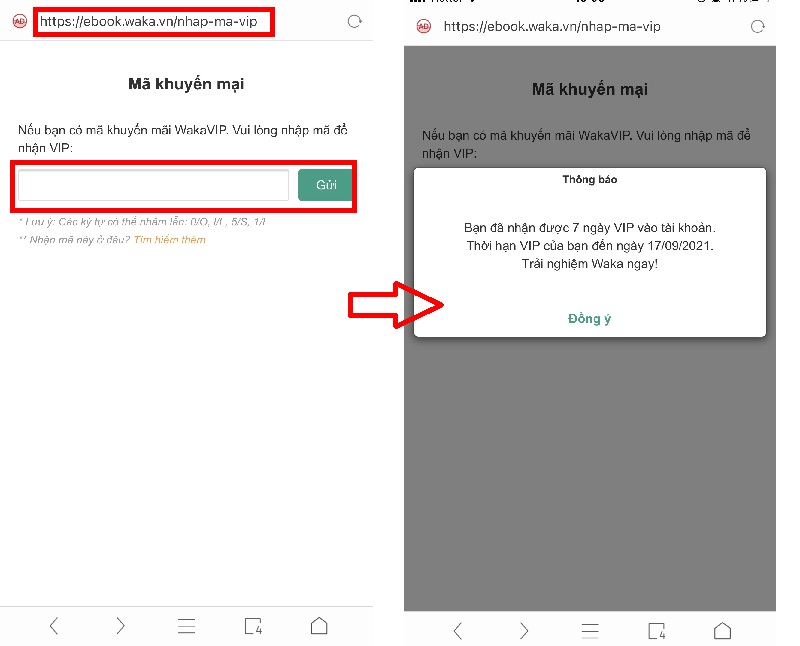 - Bước 2: Truy cập https://waka.vn/nhap-ma-vip nhập mã WakaVIP vào box nhập mã, mã active khi hiện thông báo nhập mã thành công