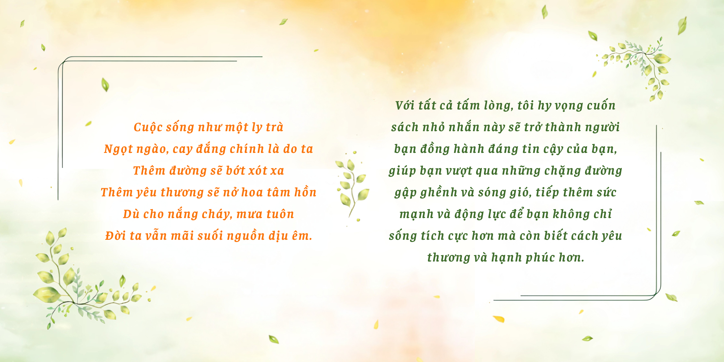 Mỗi trang sách không chỉ là những con chữ đơn điệu, mà còn là từng lời nhắn nhủ dịu dàng từ tác giả, giúp bạn tìm thấy chính mình giữa những rối ren của cuộc sống. Đó có thể là một lời động viên đúng lúc, một sự đồng cảm hay một bài học giản dị nhưng mang ý nghĩa sâu sắc.