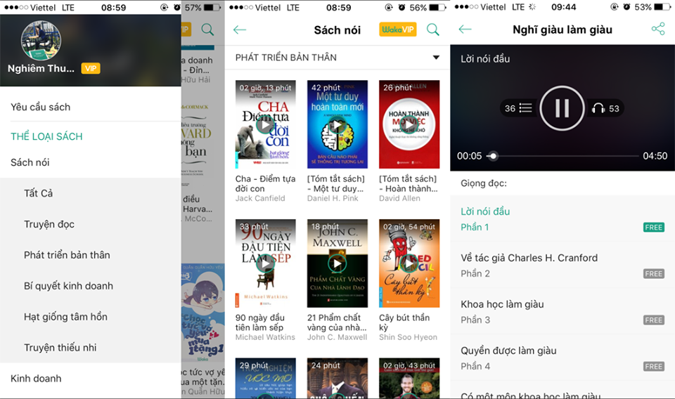 Hình: Sách nói trên ứng dụng Waka - hệ điều hành iOS