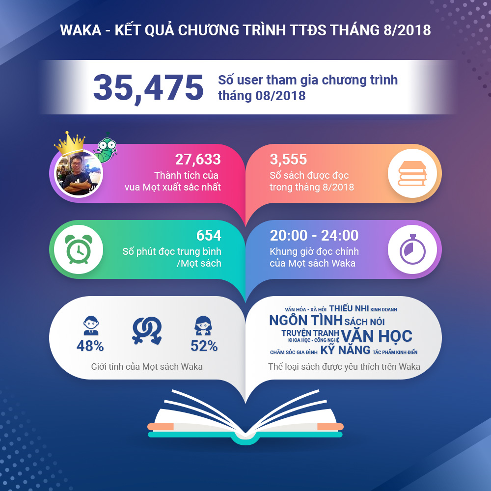 Bây giờ, hãy cùng Waka điểm lại một số kết quả của chương trình Thử thách đọc sách (TTĐS) trong tháng 8/2018 lần này nhé:
