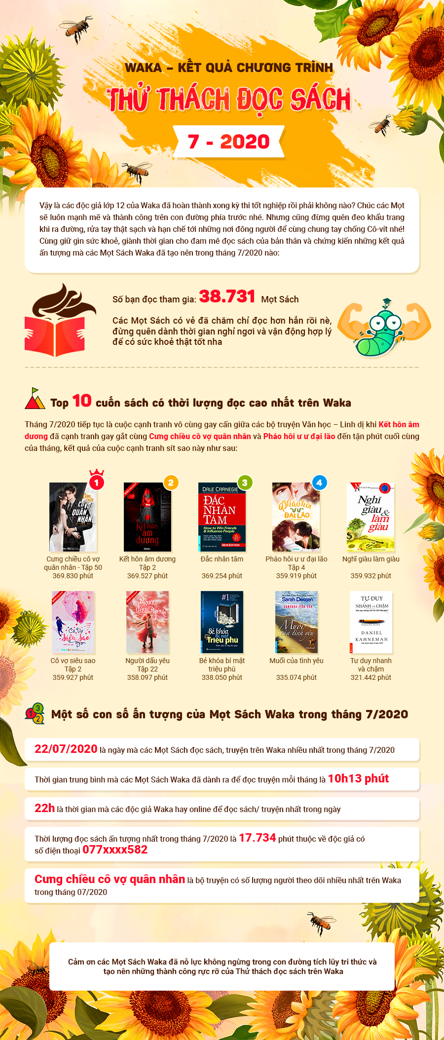 Waka - Kết quả Chương trình Thử thách đọc sách Tháng 07/2020
