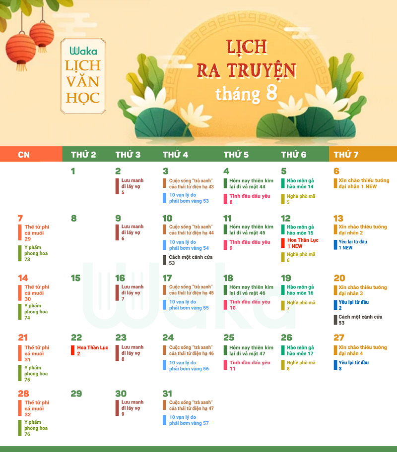 Waka - Lịch phát hành truyện Văn học tháng 08/2022