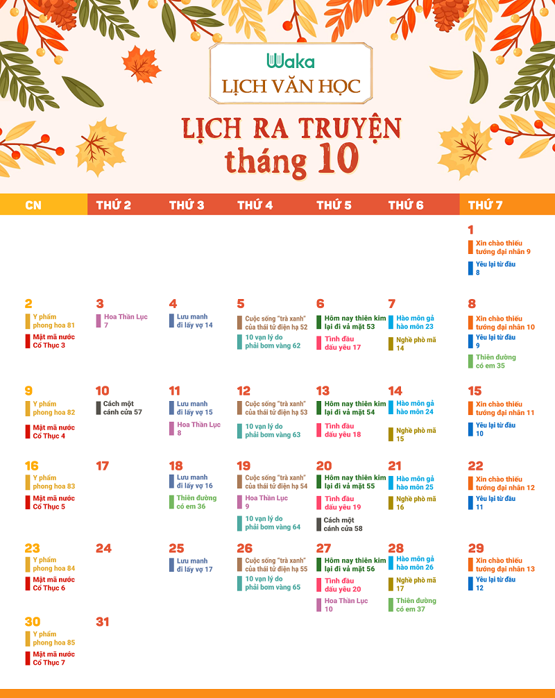 Waka - Lịch phát hành truyện Văn học tháng 10/2022