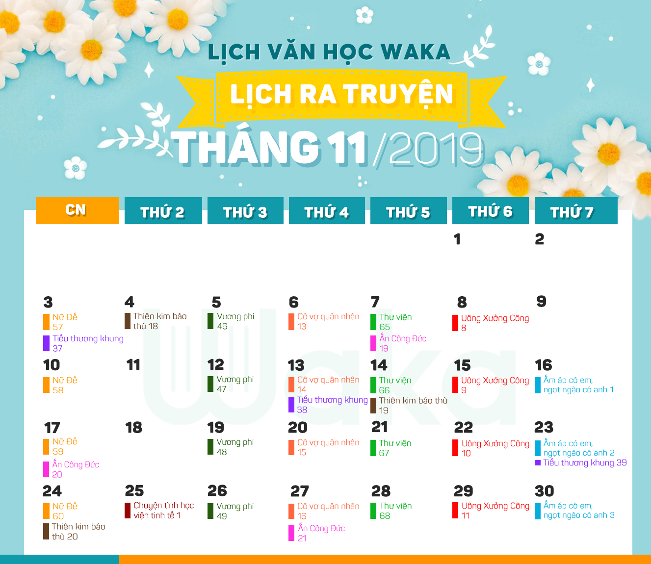 Waka - Lịch phát hành truyện Văn học tháng 11/2019