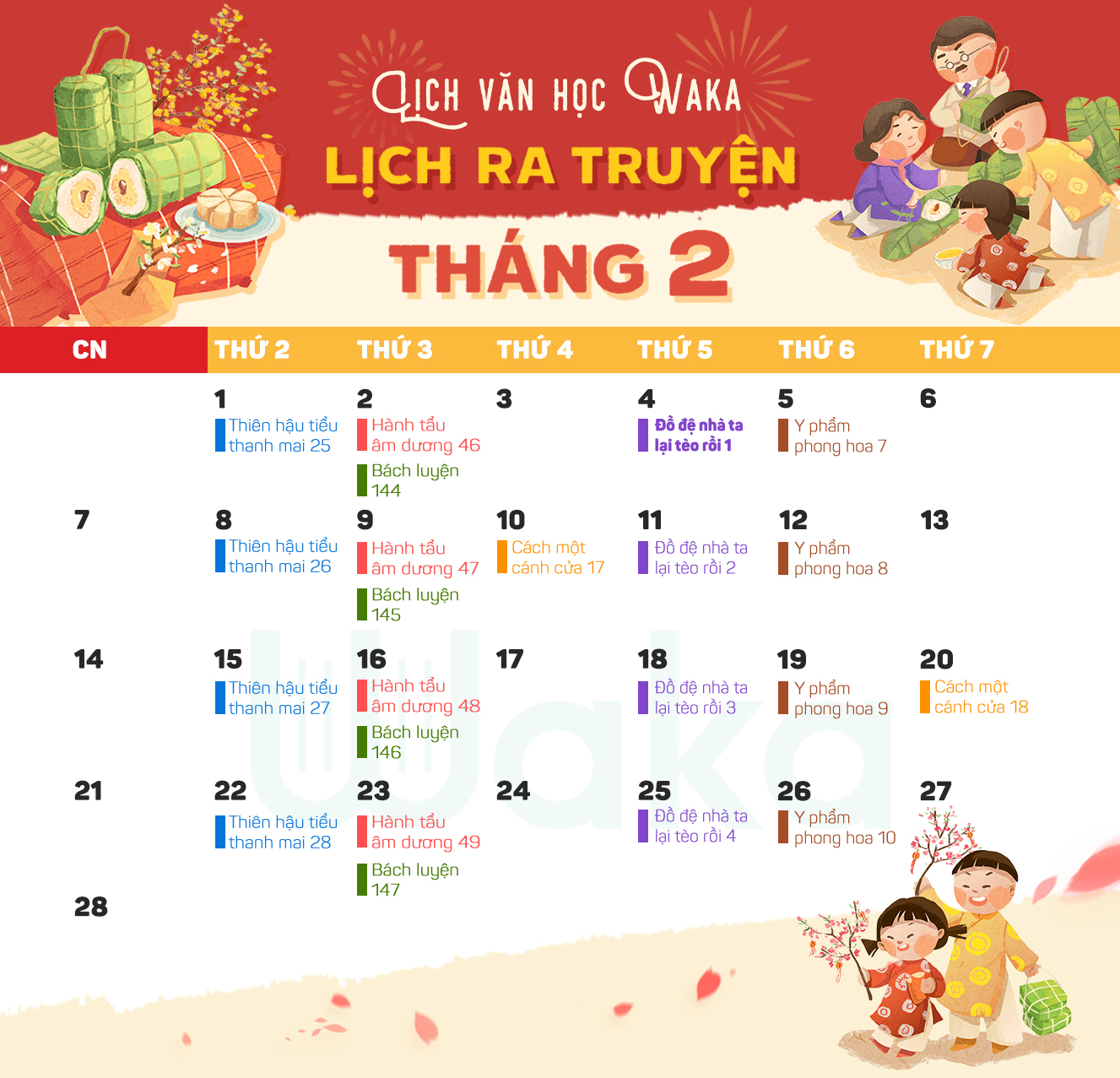 Một niềm vui nữa trong tháng Tết này đó chính là Waka sẽ lì xì cho độc giả vào mùng 1, mùng 2 và mùng 3 Tết mỗi ngày 1 tập truyện siêu hot nha, các bạn nhớ lót dép hóng đó.