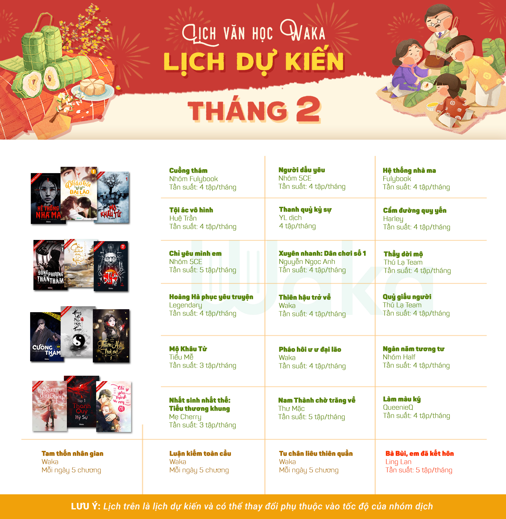 Tuy nhiên, thời gian phát hành các truyện hợp tác đều là dự kiến nên mem nhớ cập nhật thường xuyên các thông báo của Waka trên page nhé!