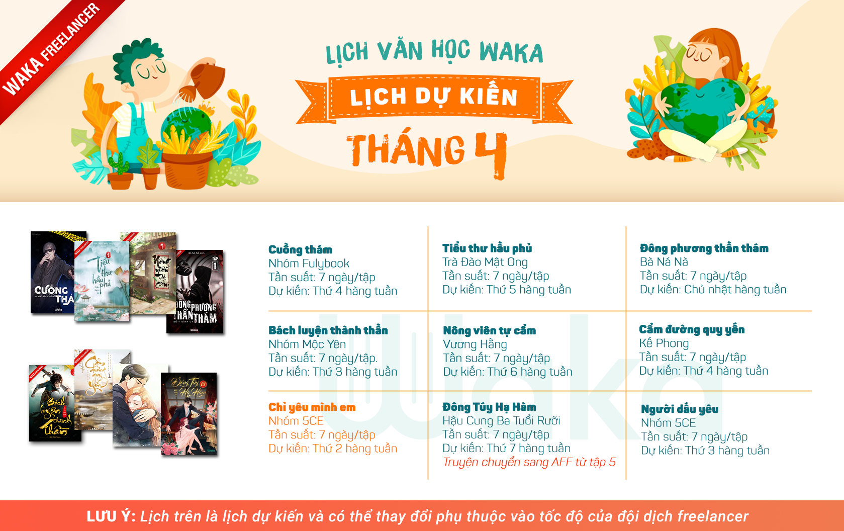 Các truyện với nhóm ngoài, Waka và các nhóm dịch sẽ luôn cố gắng duy trì tần suất đều đặn để các mem tiện lợi theo dõi lịch ra truyện, các bạn độc giả của Waka nhớ đón đọc nha!