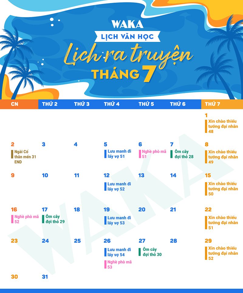 Waka - Lịch phát hành truyện Văn học tháng 7/2023