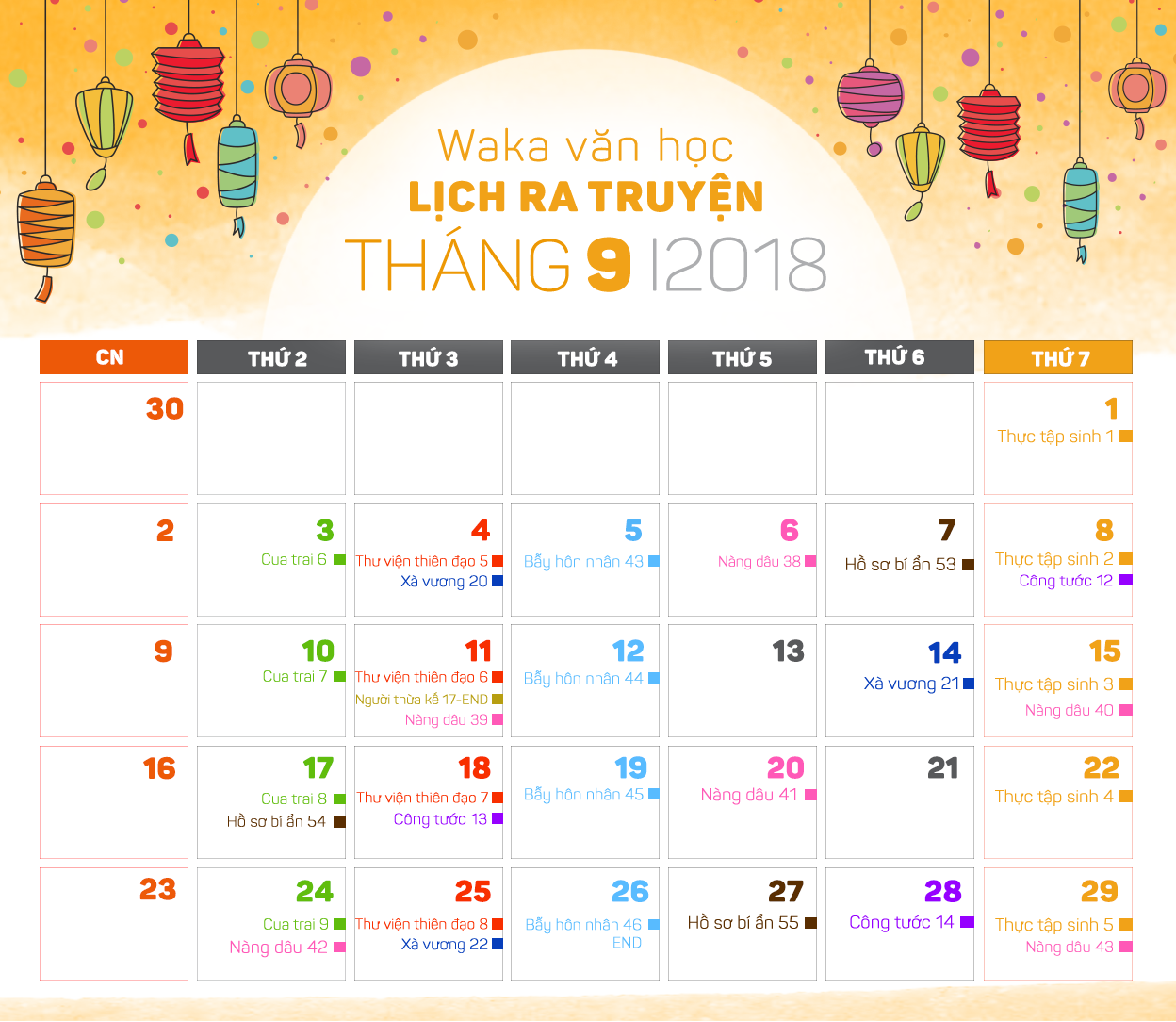 Lịch văn học WAKA tháng 9/2018