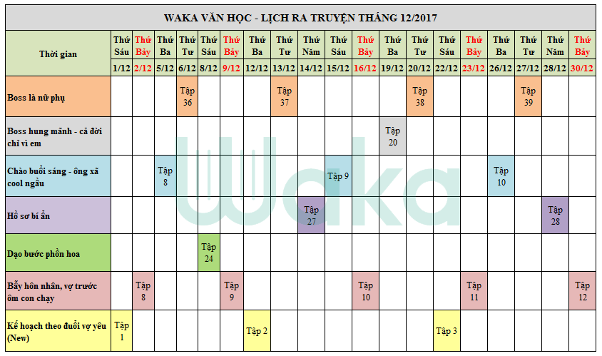 Lịch ra truyện hàng tuần tháng 12 trên Waka như sau: