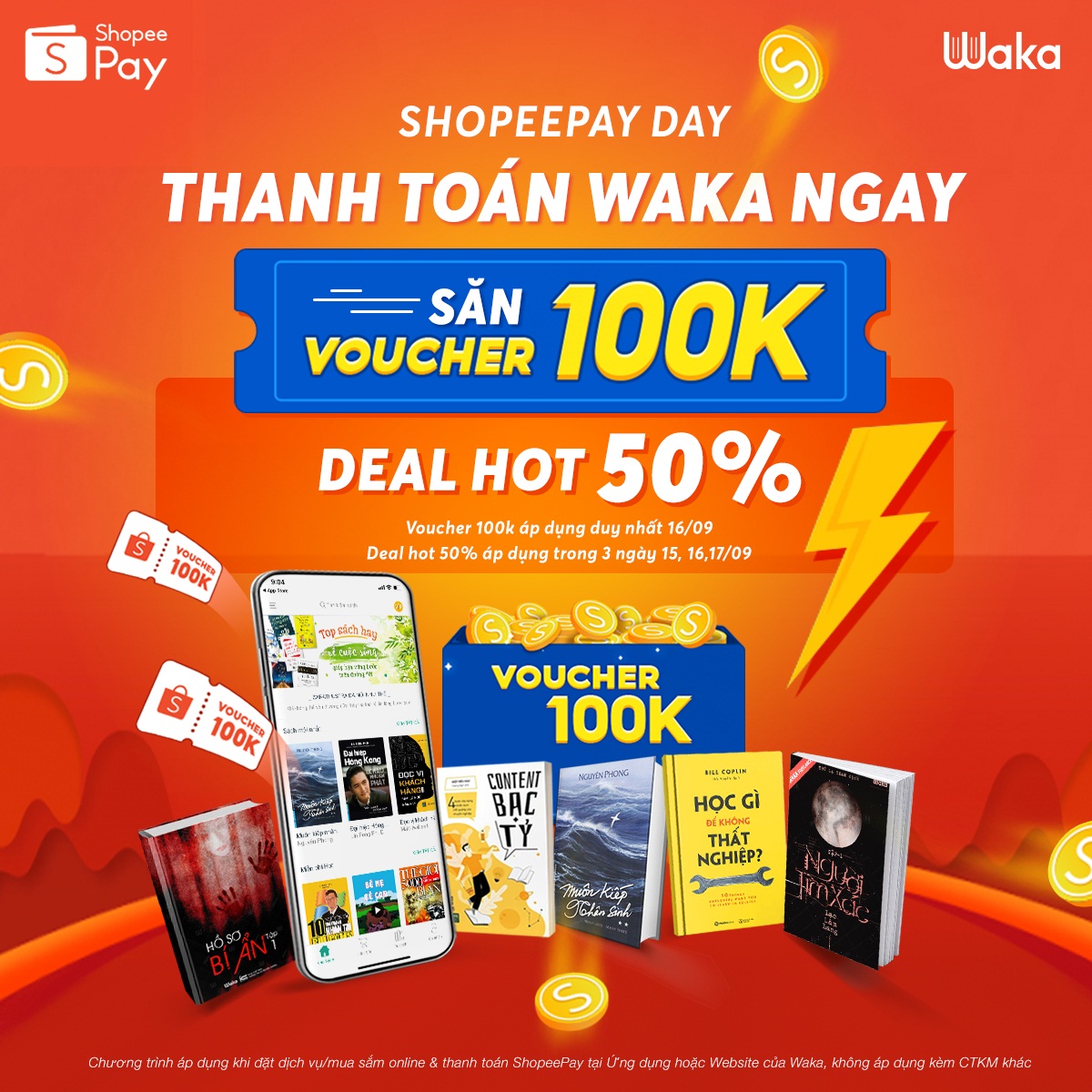 Trong 3 ngày 15, 16,17 tháng 9, nhận ngay voucher 100k và hot deal sale 50% khi thanh toán Sồi VIP Waka qua Shopeepay. cụ thể hai deal hot sẽ gồm: